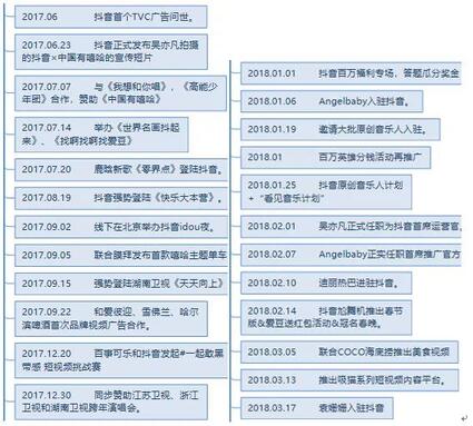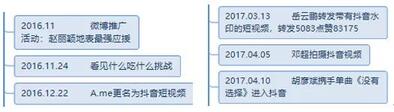 筆者梳理了抖音從上線到2017年4月份抖音公眾號(hào)出現(xiàn)的所有營銷活動(dòng)如下: