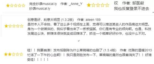 而從為數(shù)不多的負(fù)面評(píng)論中仍可以發(fā)現(xiàn)抖音本階段存在的主要問題:模式式和musically相似、閃退、無法登陸等運(yùn)行不穩(wěn)定的問題;