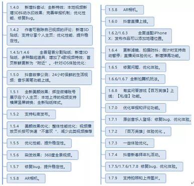 根據(jù)抖音成長歷程上的歷史版本,筆者整理出其版本的主要更新內(nèi)容如下: